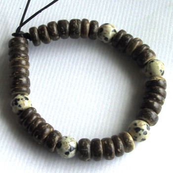 ココビーズ(ココナッツ)とダルメシアンジャスパーのブレスレット