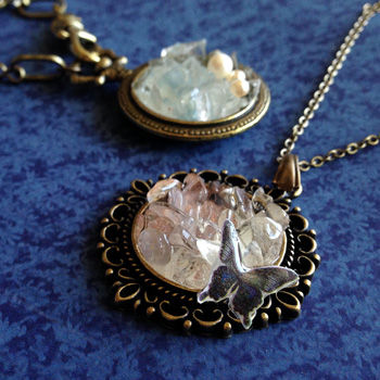 奥にはパールを、手前にはレジンでコーティングした蝶をのせてみました。